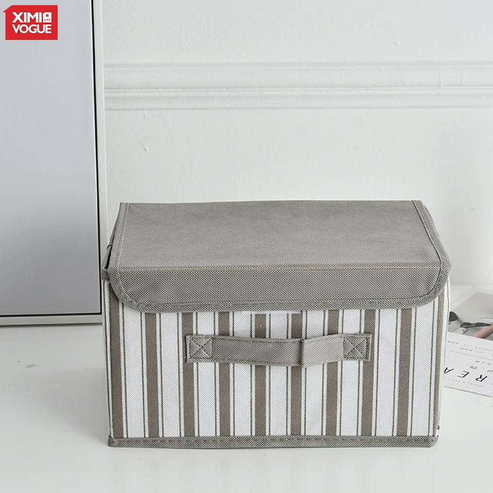 Source : Ximi Vogue Small Sized Striped Linen Fabric Storage Box